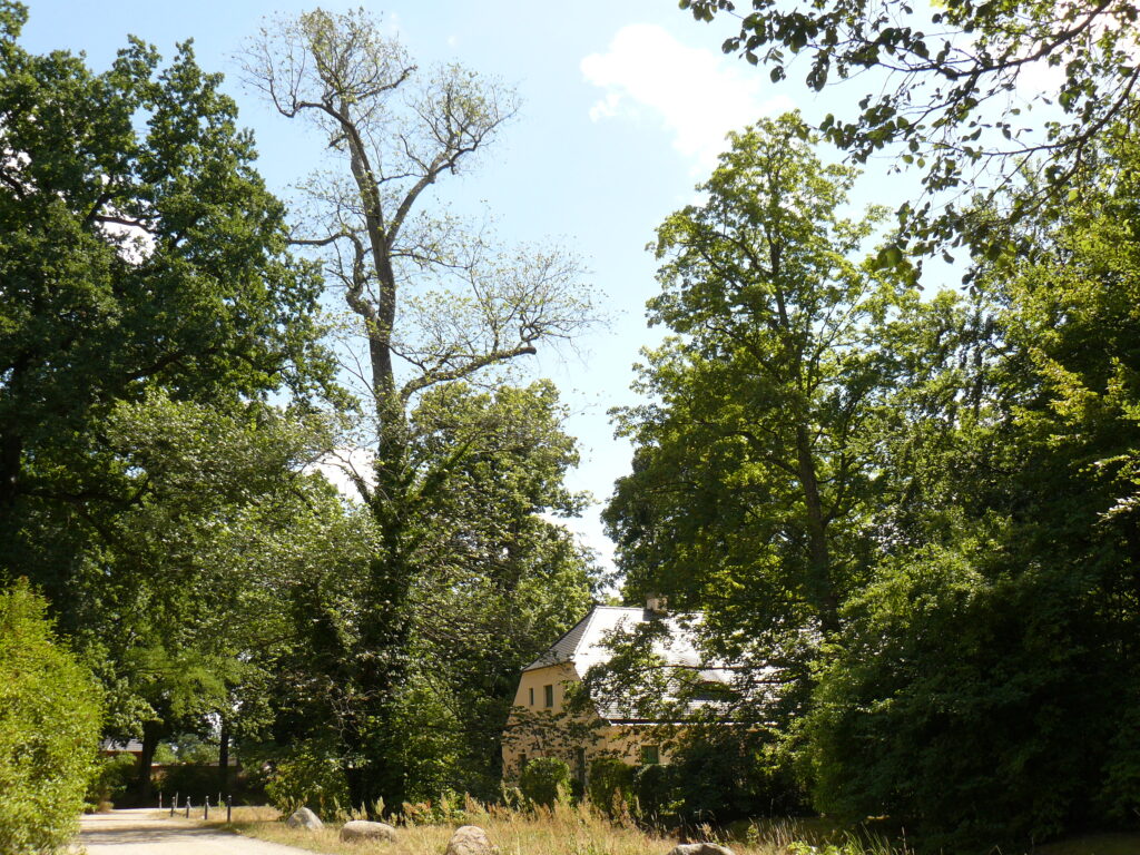 Die Biologin Anja Rolland verdeutlicht bei der Tour im Innenpark Auswirkungen des Klimawandels auf den Baumbestand des Branitzer Parks im Mittelpunkt. Anhand konkreter Beispiele werden typische Baumerkrankungen, Schadbilder sowie der Befall durch Insekten und Pilze erläutert.
