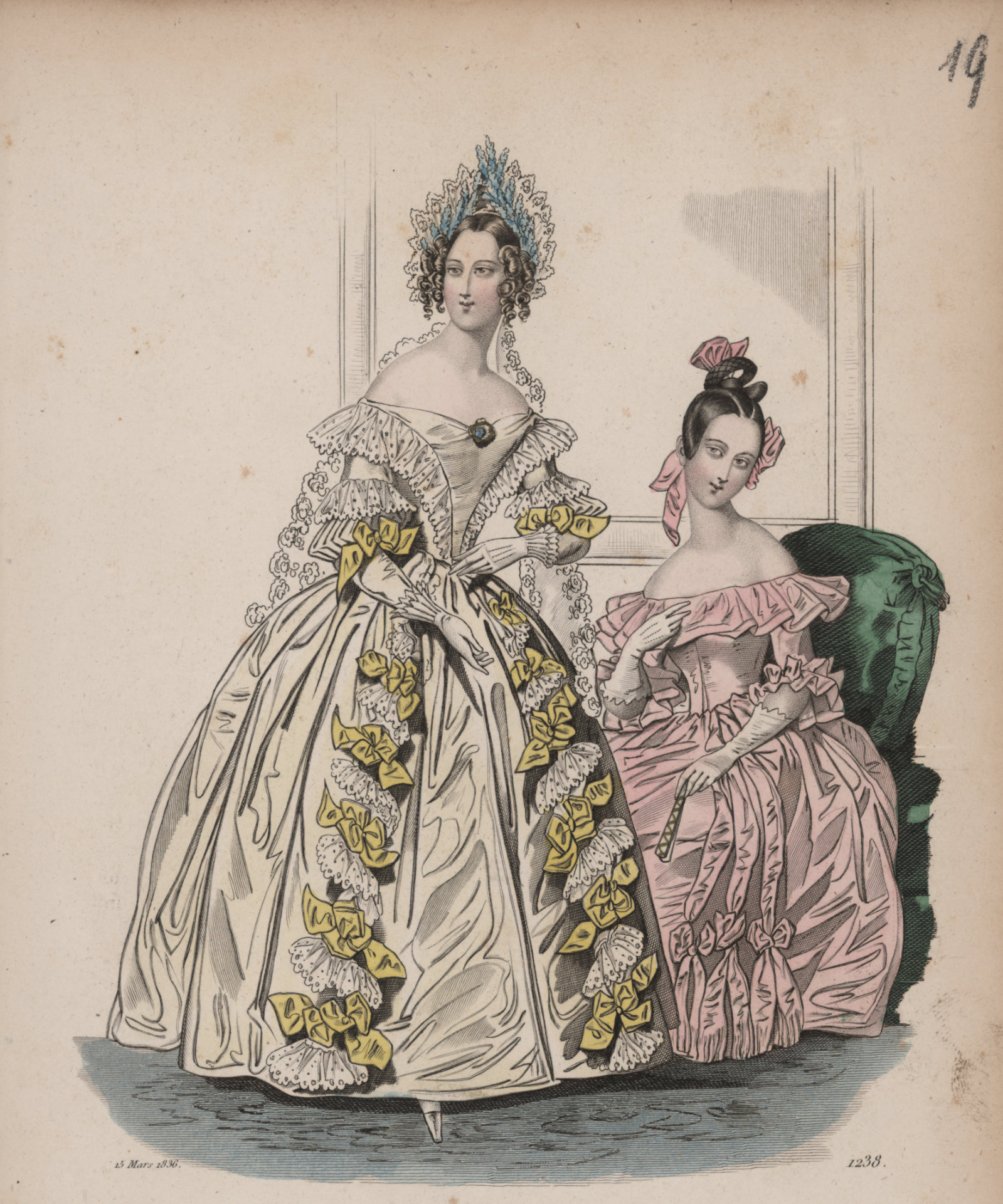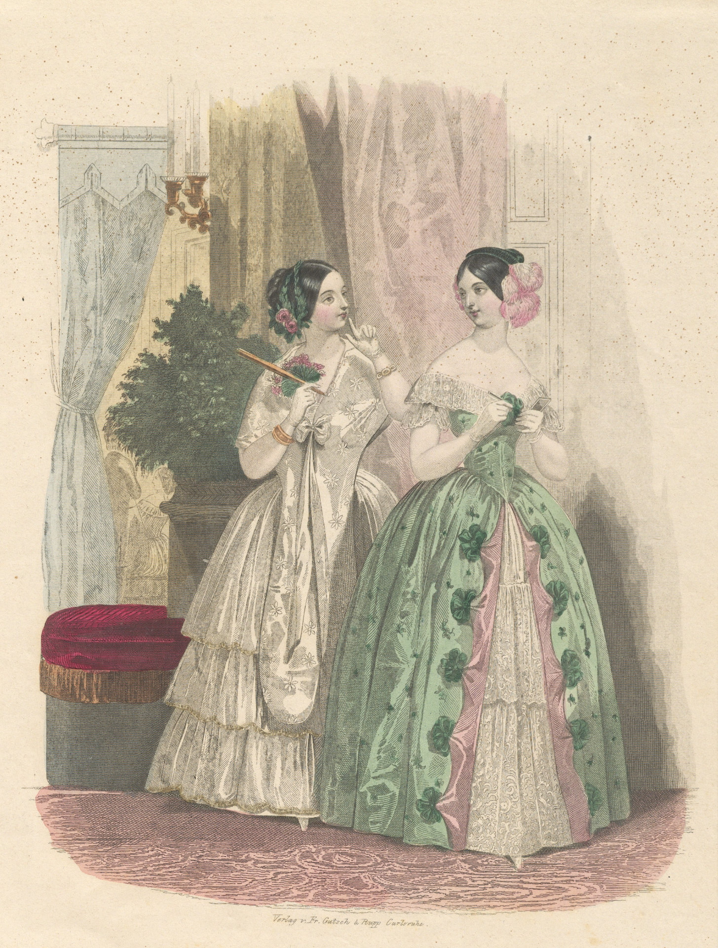 Mode war ein wiederkehrendes Thema in der Korrespondenz der Fürstin mit ihrer Tochter Adelheidt zu Carolath-Beuthen. Zu ihren Inspirationsquellen zählte auch Petit Courrier des Dames, eine Pariser Modezeitschrift, aus der diese Abbildung stammt.