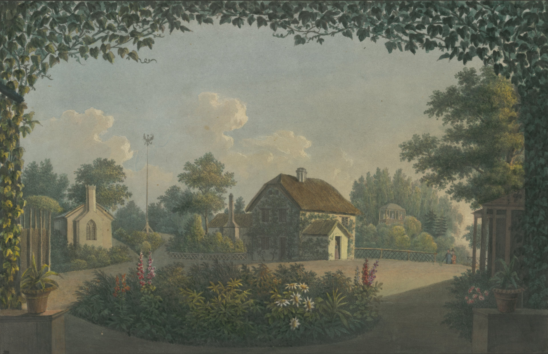 Die von Lucie bestellte Werbebroschüre für das Muskauer Bad, zu deren Illustration diese Ansicht 1825 angefertigt wurde, beschreibt das Englische Haus als „[...] Cottage im englischen Geschmack, an einer hohen Eiche, mit einem Blumengarten umgeben und von wildem Wein und Rosen umrankt.“