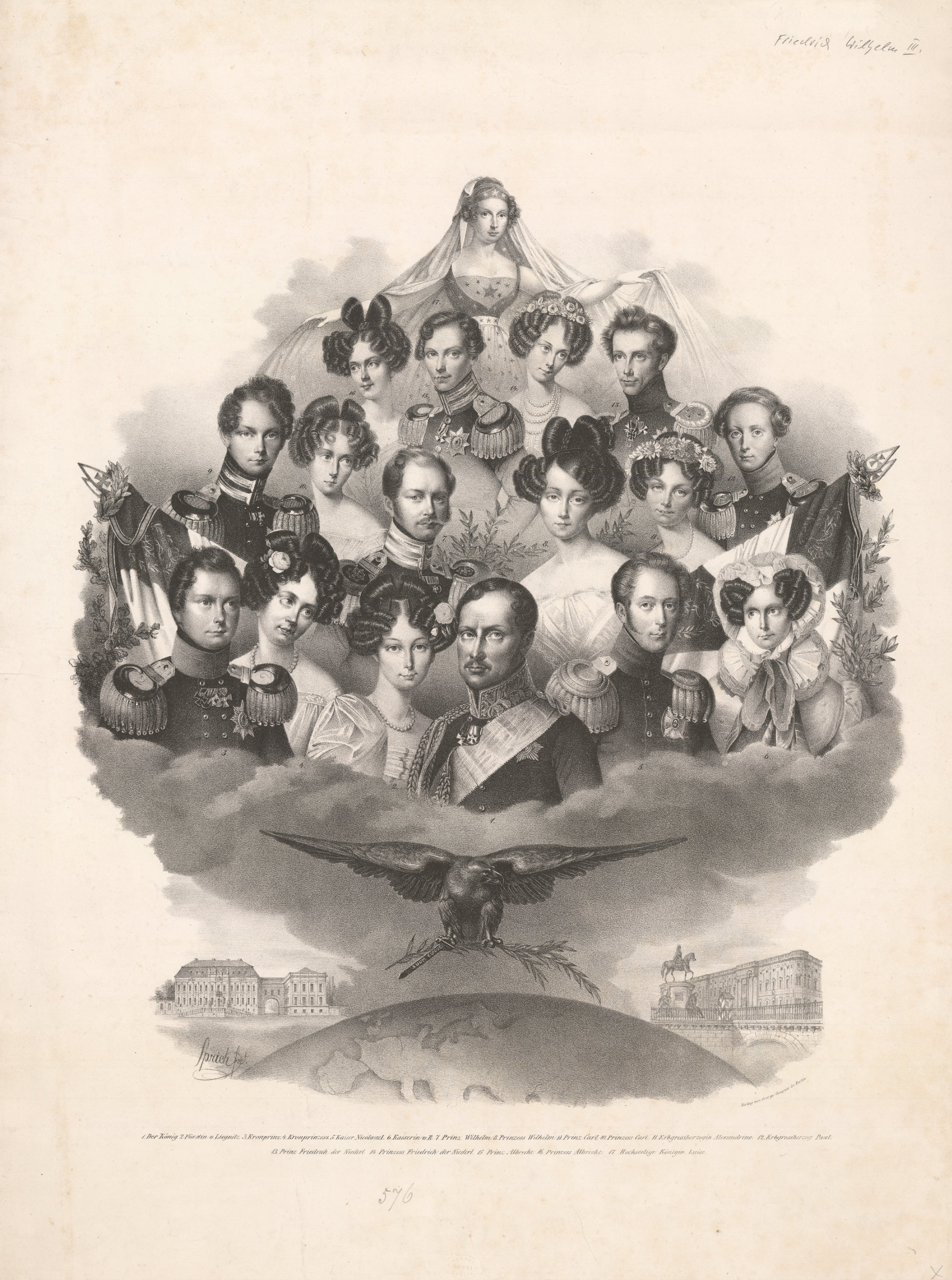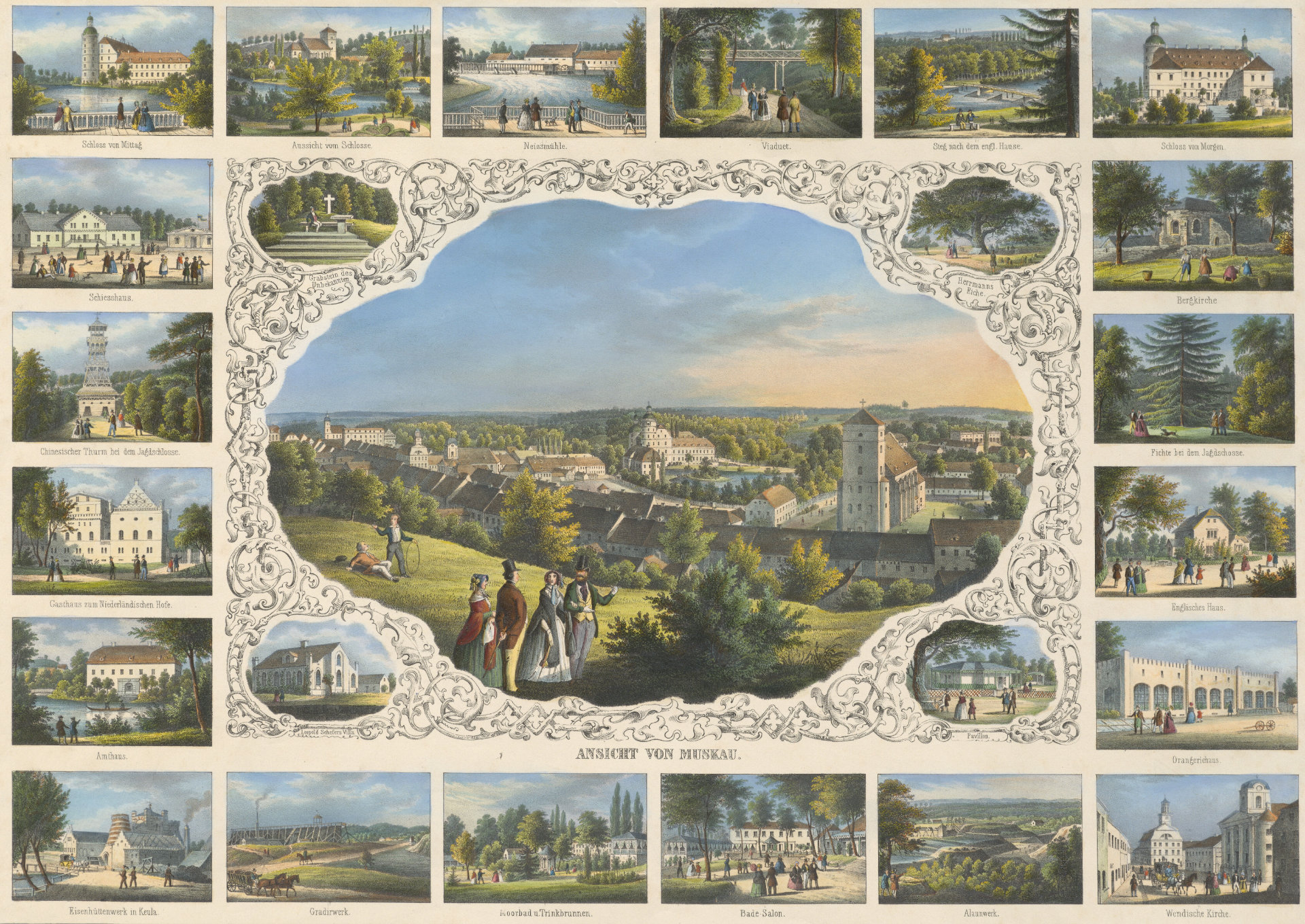 „Sr. Königl. Hoheit dem Prinzen Friedrich der Niederlande ehrfurchtsvoll gewidmet vom Verleger“, Verlag T. Rumbaum (Muskau), Farblithografie, Gustav Täubert, um 1850, SFPM