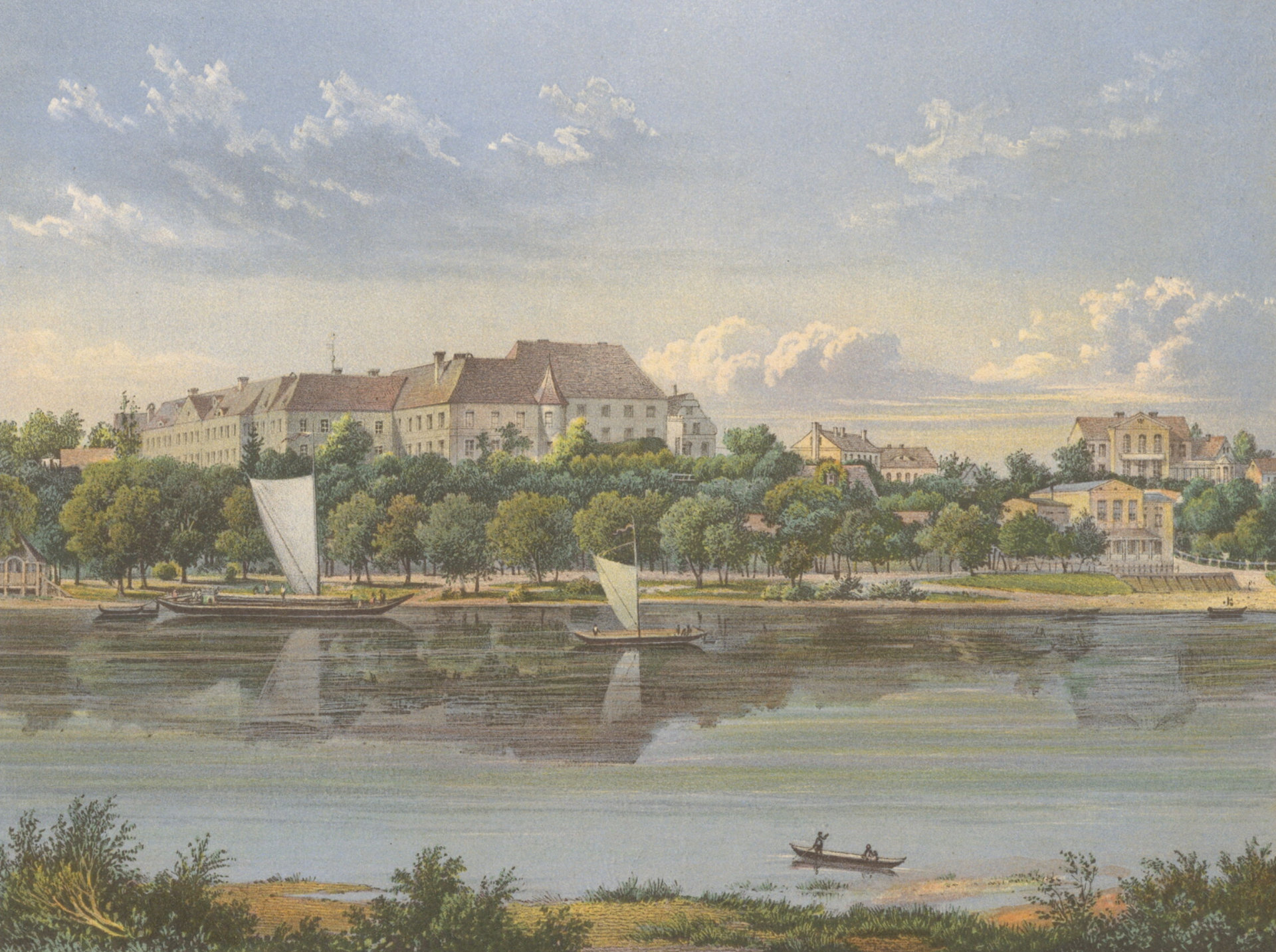 Ansicht des Schlosses und eines Theils der Stadt vom Park aus