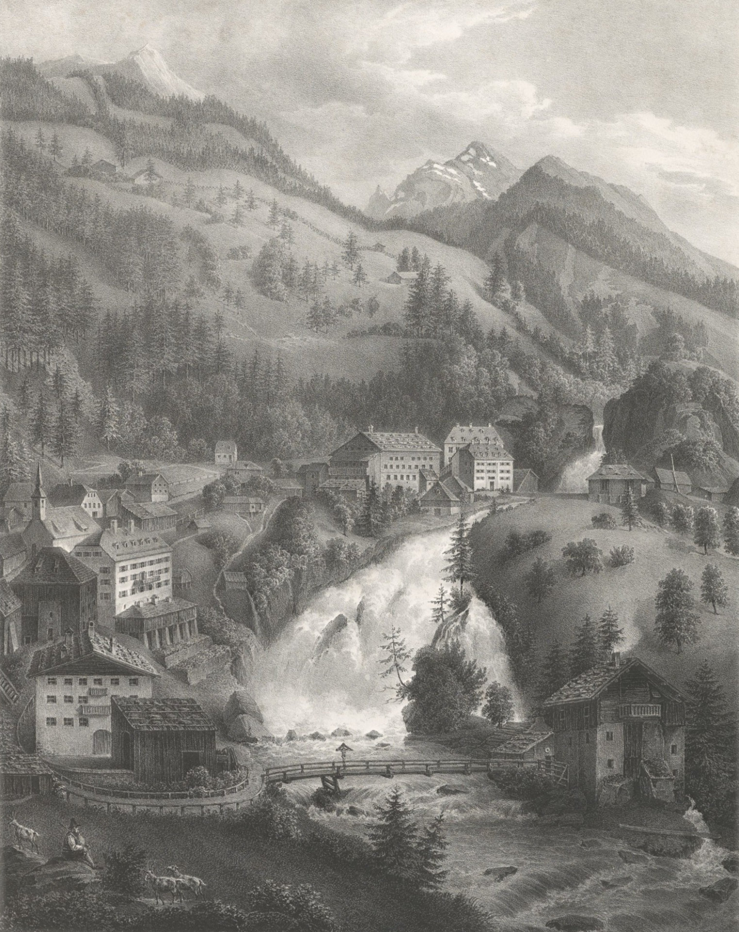 Bad Gastein war das liebste Reiseziel von Fürstin Lucies Tochter, Adelheidt zu Carolath-Beuthen, nach deren Zeichnung diese Lithografie entstand. Lucie besuchte Bad Gastein mehrmals, nach dem Tod ihrer geliebten Tochter 1849 auch gemeinsam mit Pückler.