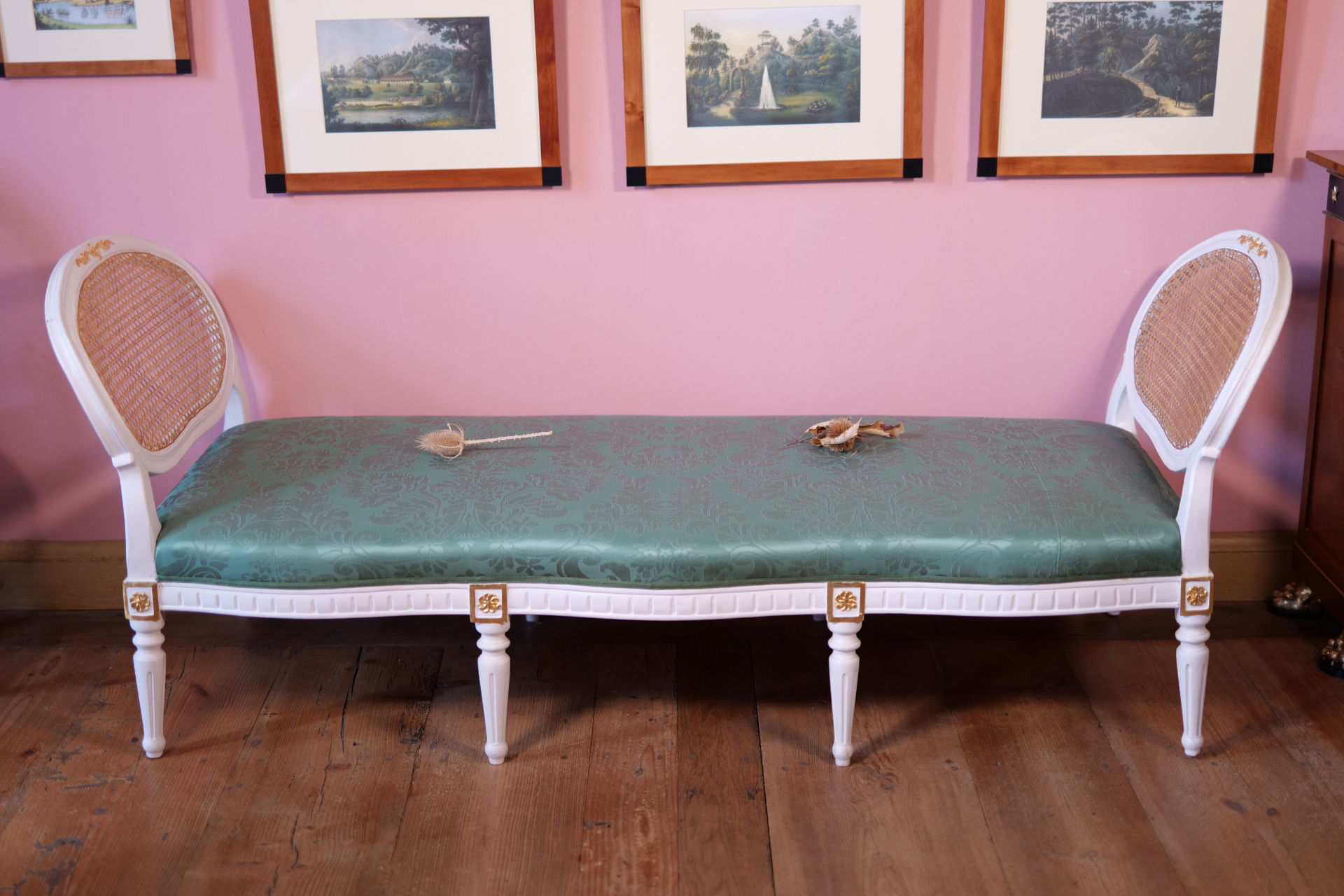 Nur durch Zufall fand dieses Sitzmöbel seinen Weg zurück nach Branitz. Als ausgemusterte Requisite des Cottbuser Staatstheaters landete sie 1994 auf dem Müll, ehe anhand des unterseitigen Brandstempels ihr eigentlicher Wert erkannt wurde
